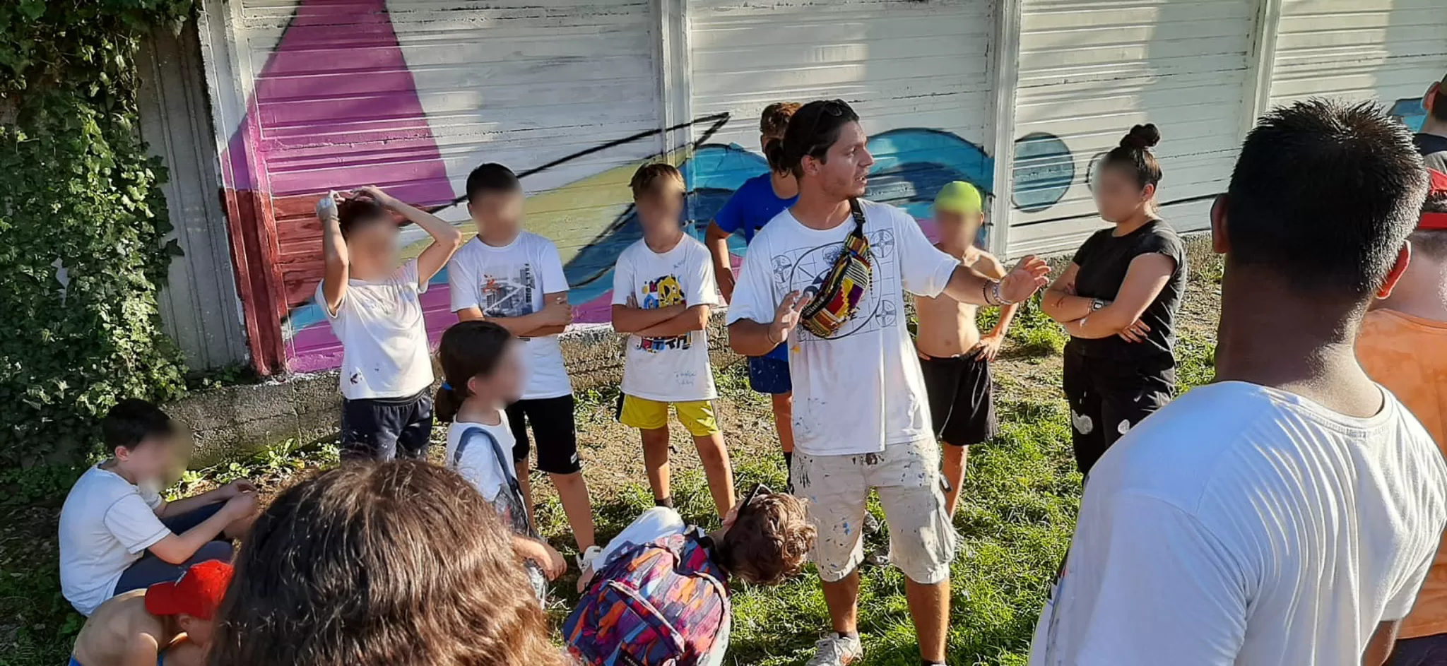 È stata un’esperienza professionale faticosa ma soddisfacente. La gestione di così tanti ragazzi, molti dei quali si sono aggiunti in corso d’opera in poche settimane, è stata sopportata dalla carica che mi trasmettevano con la loro grinta e determinazione armati di pennelli e rulli. Nonostante il lavoro previsto nelle ore del tardo pomeriggio, oltre ad essere potenzialmente stanchi dai grest e dal caldo, essi infatti hanno accolto con entusiasmo l’iniziativa; sentivano di poter lasciare qualcosa di permanente nel loro piccolo comune, nel quale hanno lamentato la mancanza di iniziative giovanili. Il gruppo si è divertito e i ragazzi sono rimasti in compagnia, creando dei bei rapporti tra piccoli e grandi e una peer education efficace. I messaggi di ringraziamento poi dei loro genitori e del racconto entusiastico dei figli a casa mi ha ripagato dei tanti sforzi (e magliette sudate).